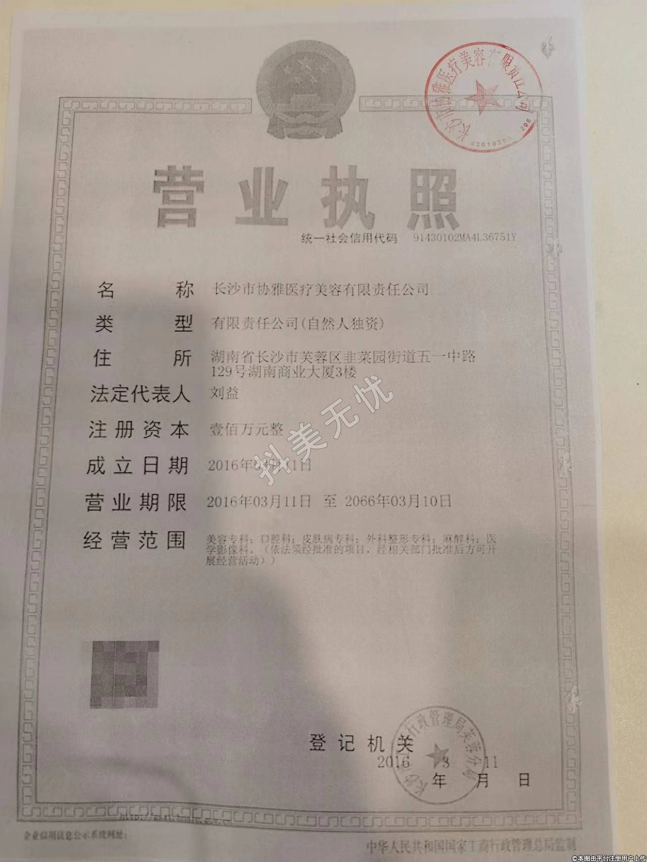 发证机关:长沙市芙蓉区行政审批局
