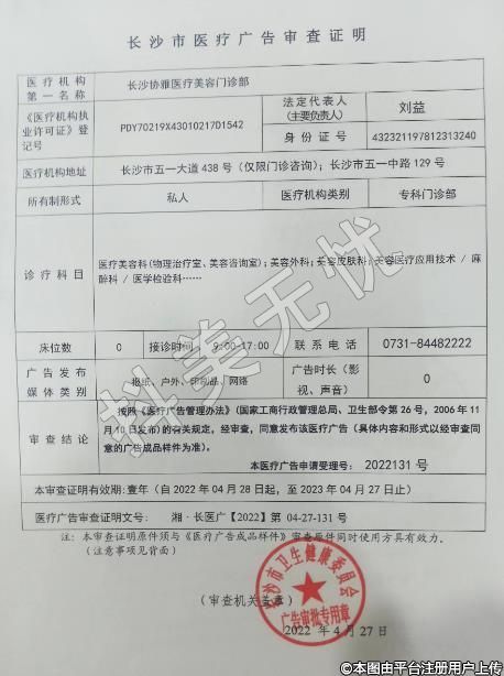 机构名称:长沙协雅医疗美容门诊部
