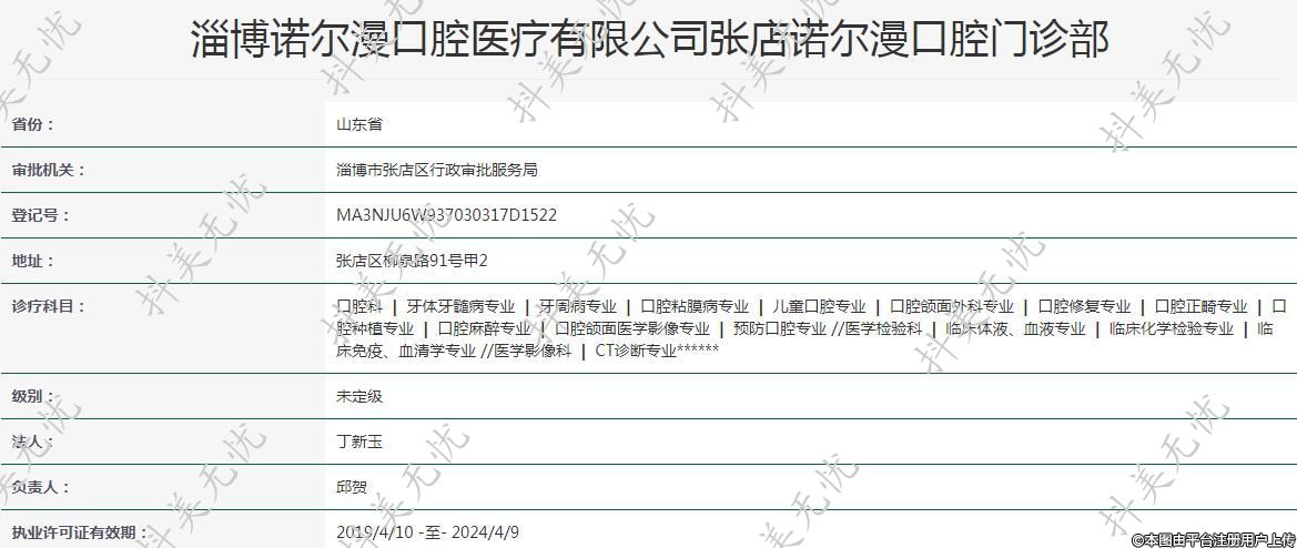 淄博诺尔漫口腔医疗有限公司张店诺尔漫口腔门诊部