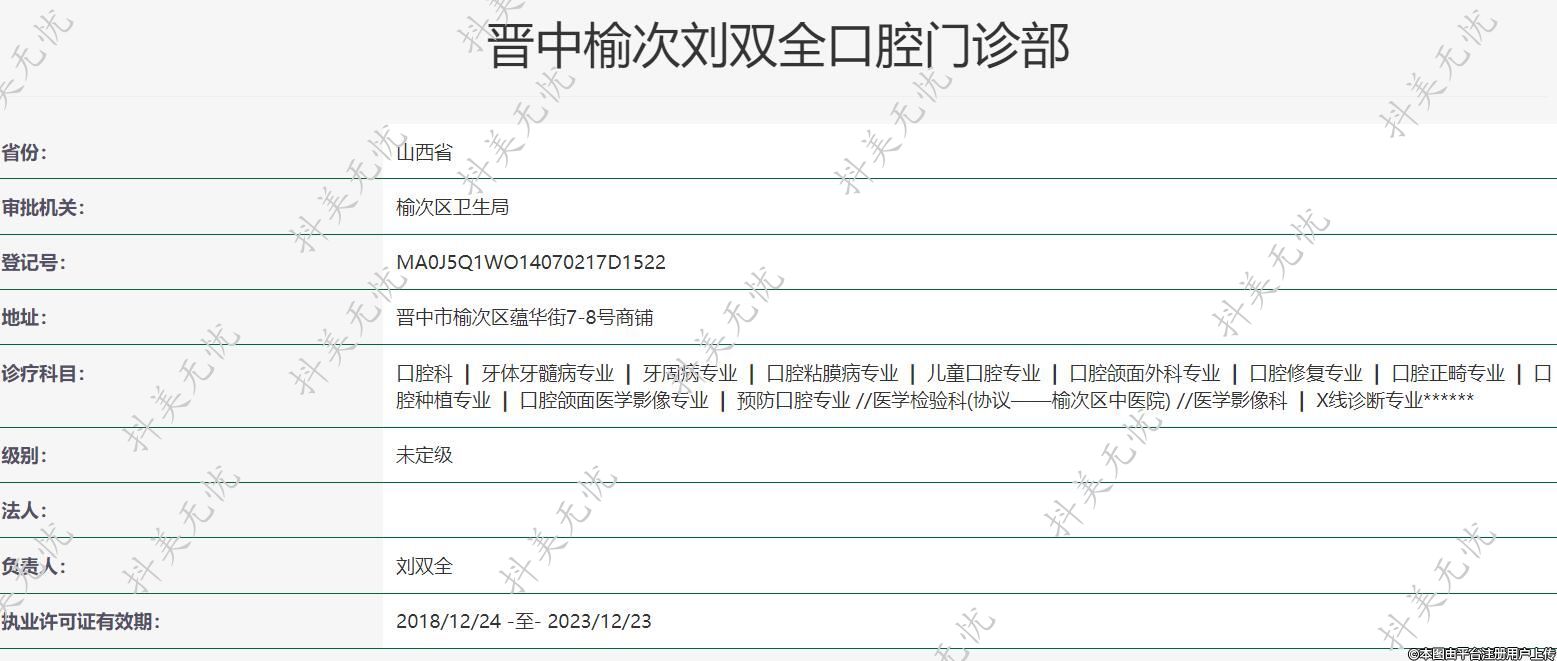 诊疗科目:口腔科|牙体牙髓病专业|牙周病专业|口腔粘膜病专业儿童口腔专业 口腔颌面外科专业口腔修复专业口腔正畸专业腔种植专业|口腔颌面医学影像专业|预防口腔专业//医学检验科(协议-榆次区中医院)//医学影像科| X线诊断专业*****i