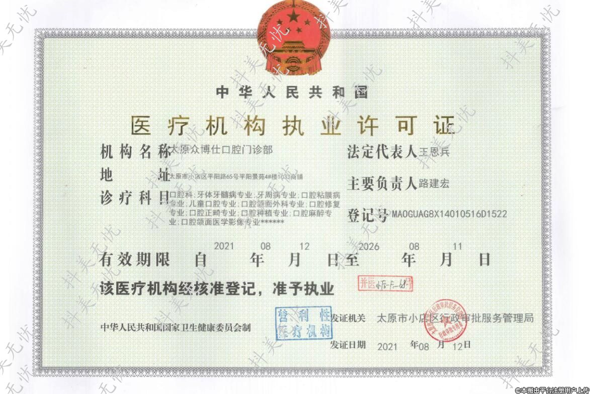 机构名称:太原众博仕口腔门诊部