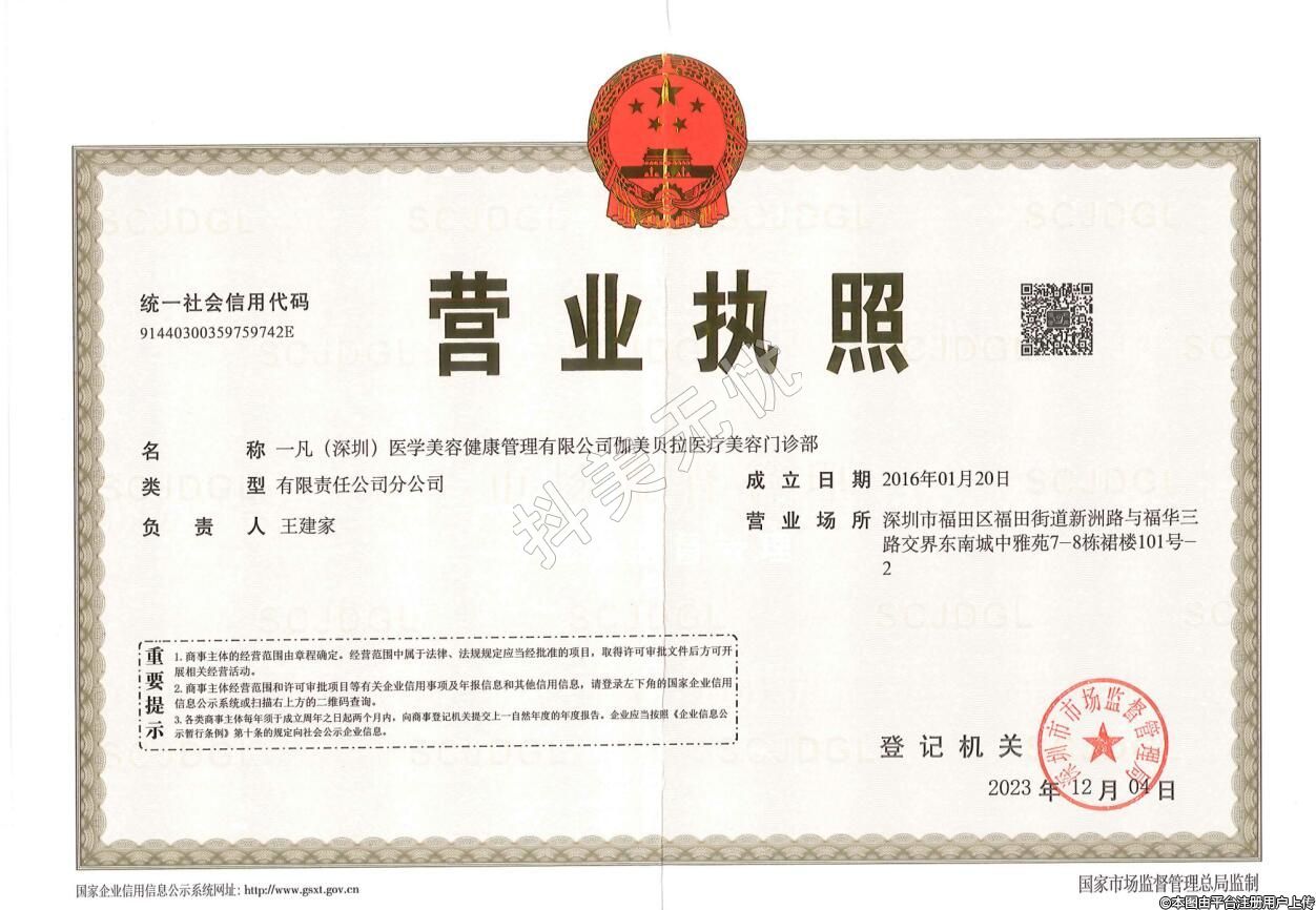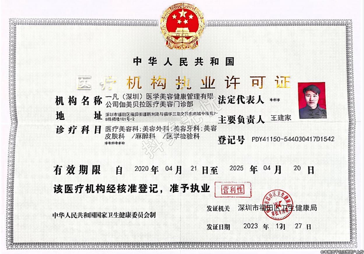 机构名称:凡(深圳)医学美容健康管理有限公司伽美贝拉医疗美容门诊部