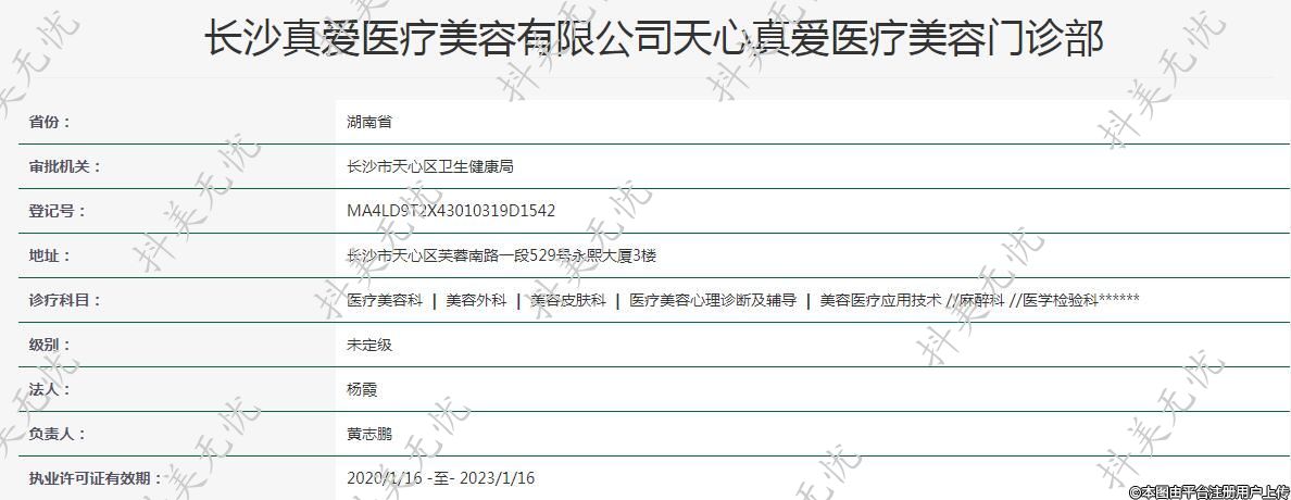 长沙真爱医疗美容有限公司天心真爱医疗美容门诊部