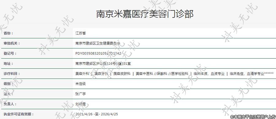 南京米嘉医疗美容是经过南京市建邺区卫生健康委员会审批成立的正规医美整形机构,坚持一对一面诊。