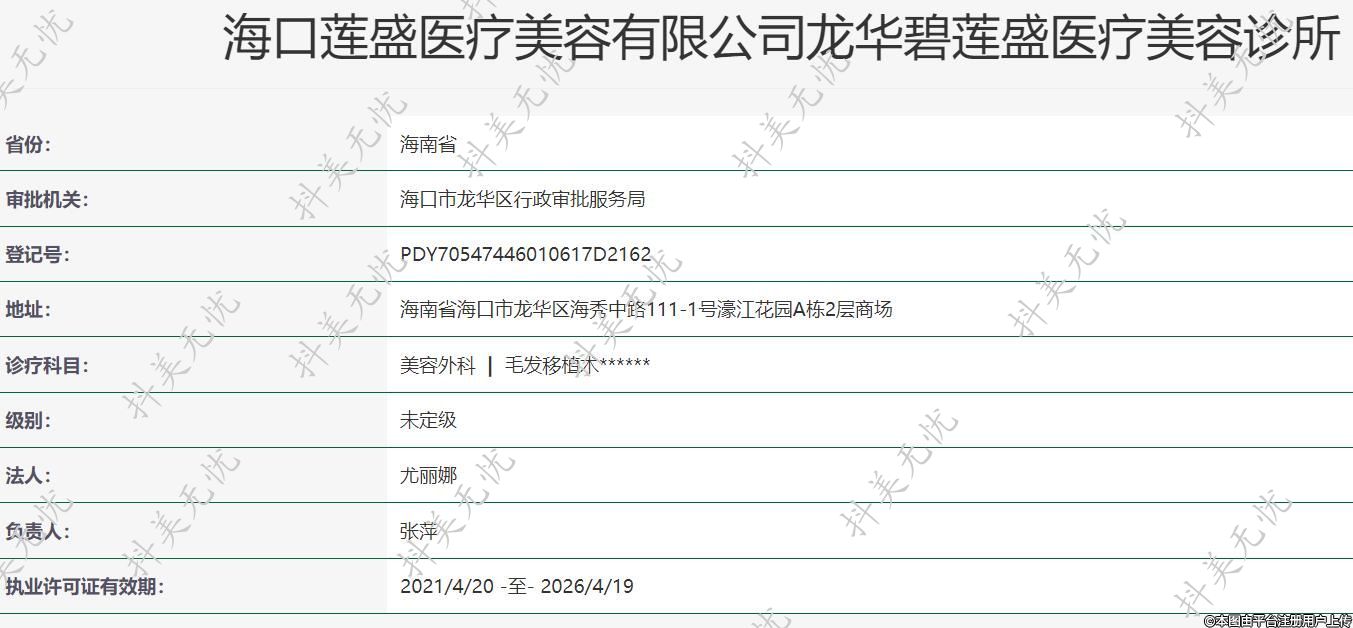 海口莲盛医疗美容有限公司龙华碧莲盛医疗美容诊所
