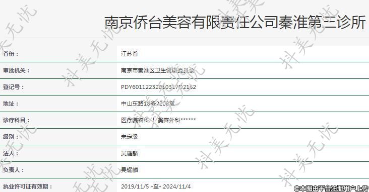 南京侨台美容有限责任公司秦淮第三诊所