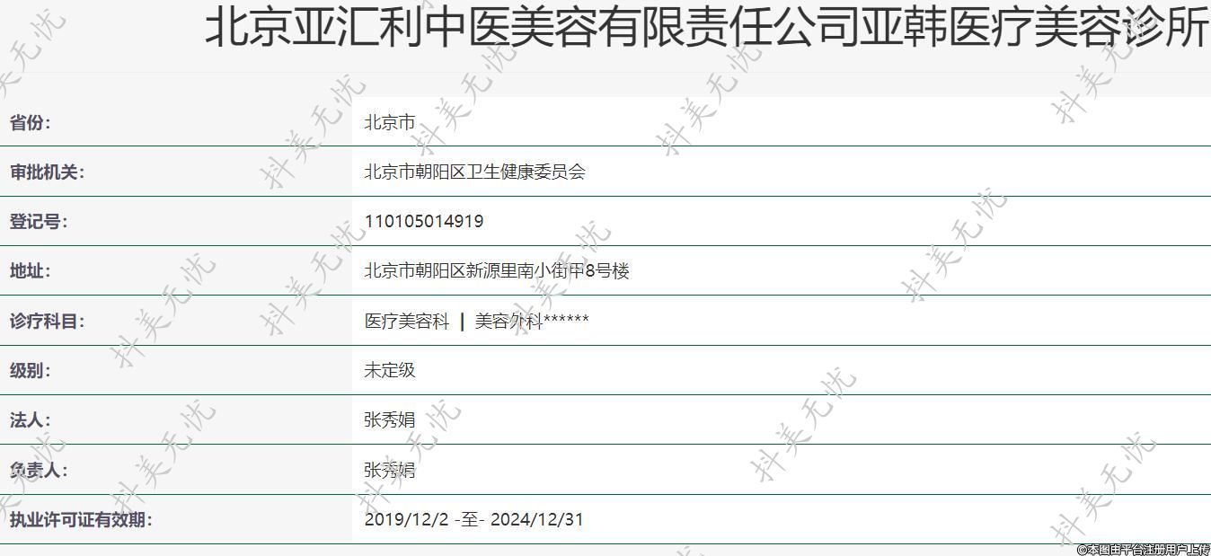 北京亚汇利中医美容有限责任公司亚韩医疗美容诊所