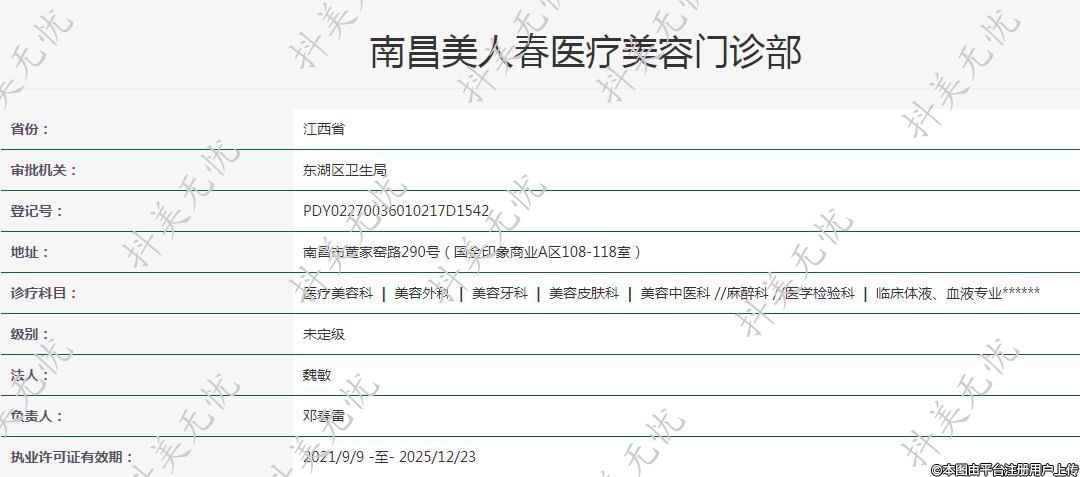 南昌美人春医疗美容是香港东方医疗集团全资子公司。成立于2015年,地址:南昌市青山路国金印象商业区,实际医疗面积1200平方,内设美容外科,美容皮肤科。