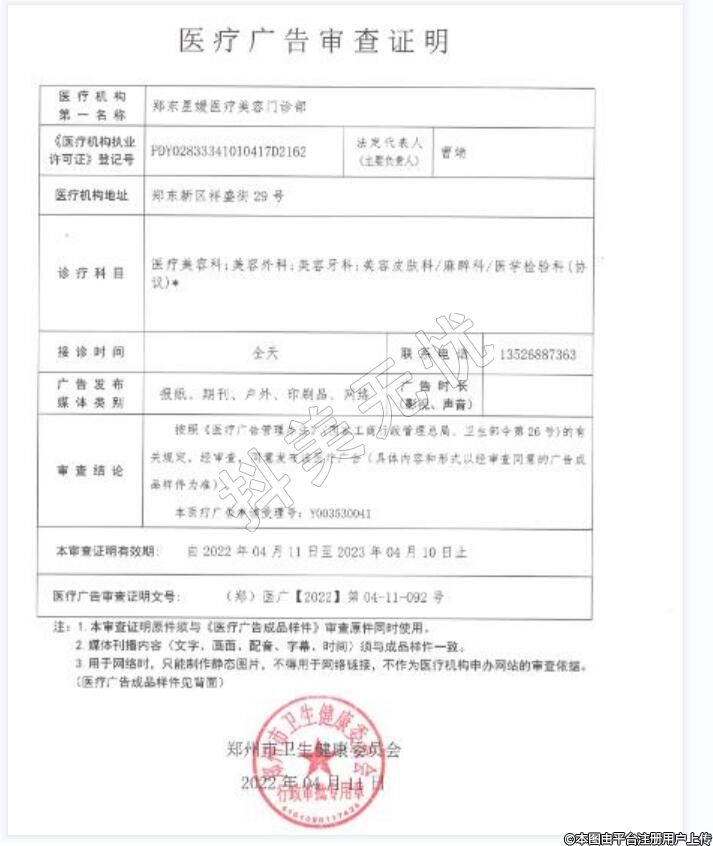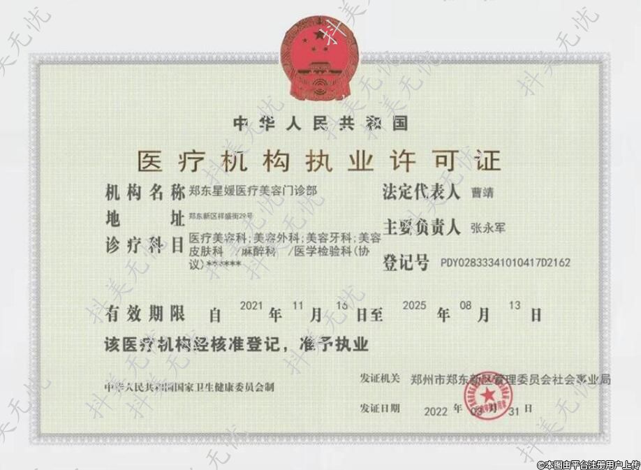 机构名称:郑东星媛医疗美容门诊部