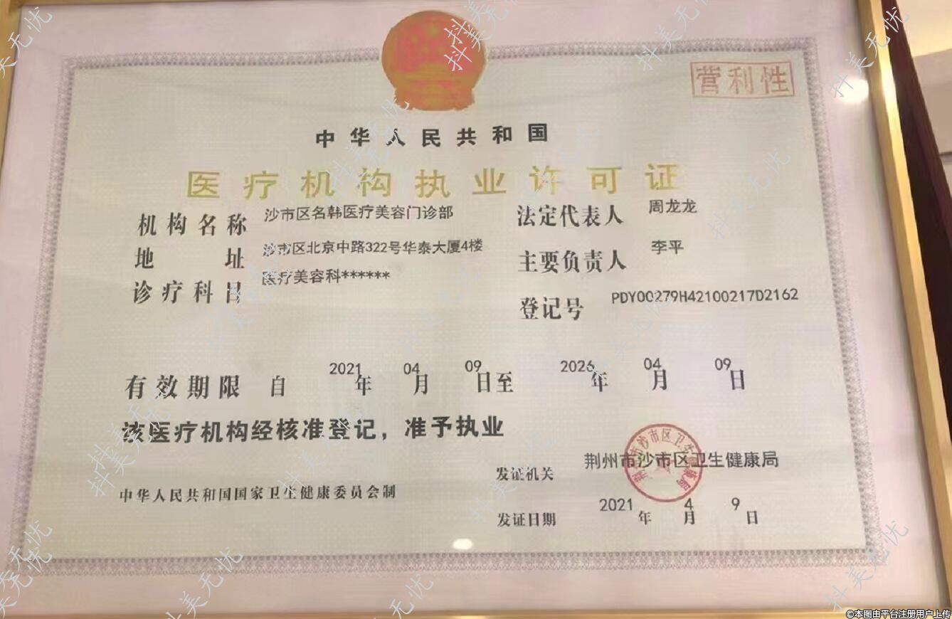 荆州名韩医疗美容诊所,创始于1989年。座落于沙市区中心地带,按照整形医院的标准配置,奢华、典雅、大气的装修风格。诊疗科目:医疗美容科******
