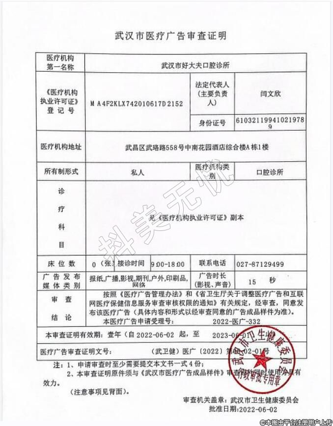 机构名称:武汉市好大夫口腔诊所(备案)