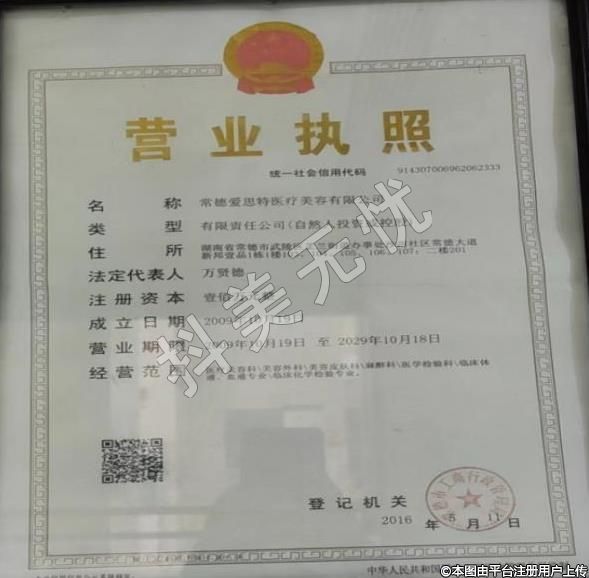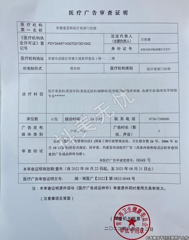 机构名称:常德爱思特医疗美容门诊部