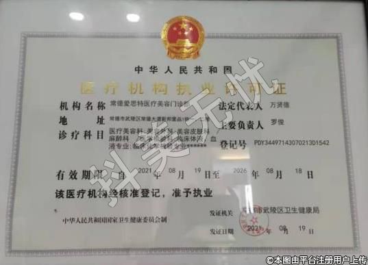 发证机关:常德市武陵区卫生健康局
