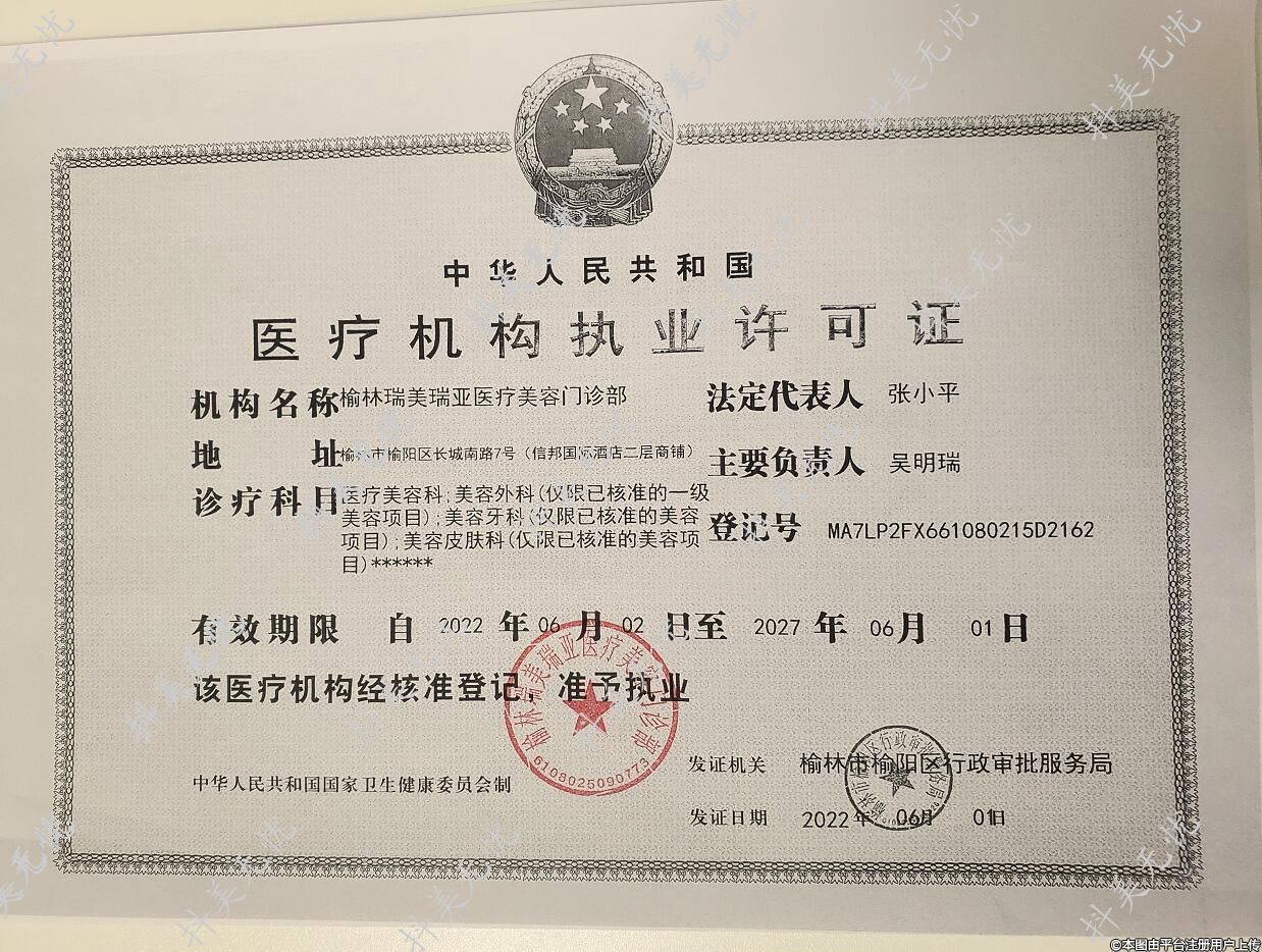 机构名称:榆林瑞美瑞亚医疗美容门诊部