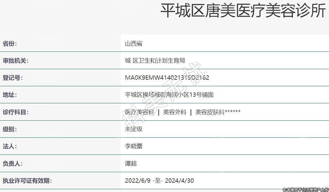平城区唐美医疗美容诊所成立于2018年10月25日,位于山西省大同市平城区操场城街海润小区13号铺面。