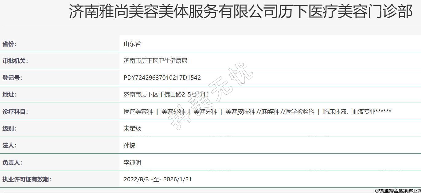 济南雅尚美容美体服务有限公司历下医疗美容门诊部