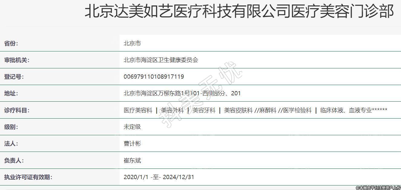 北京达美如艺医疗科技有限公司医疗美容门诊部