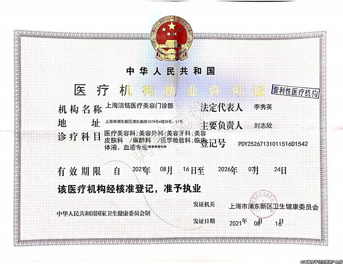 机构名称:上海洁铭医疗美容门诊部
