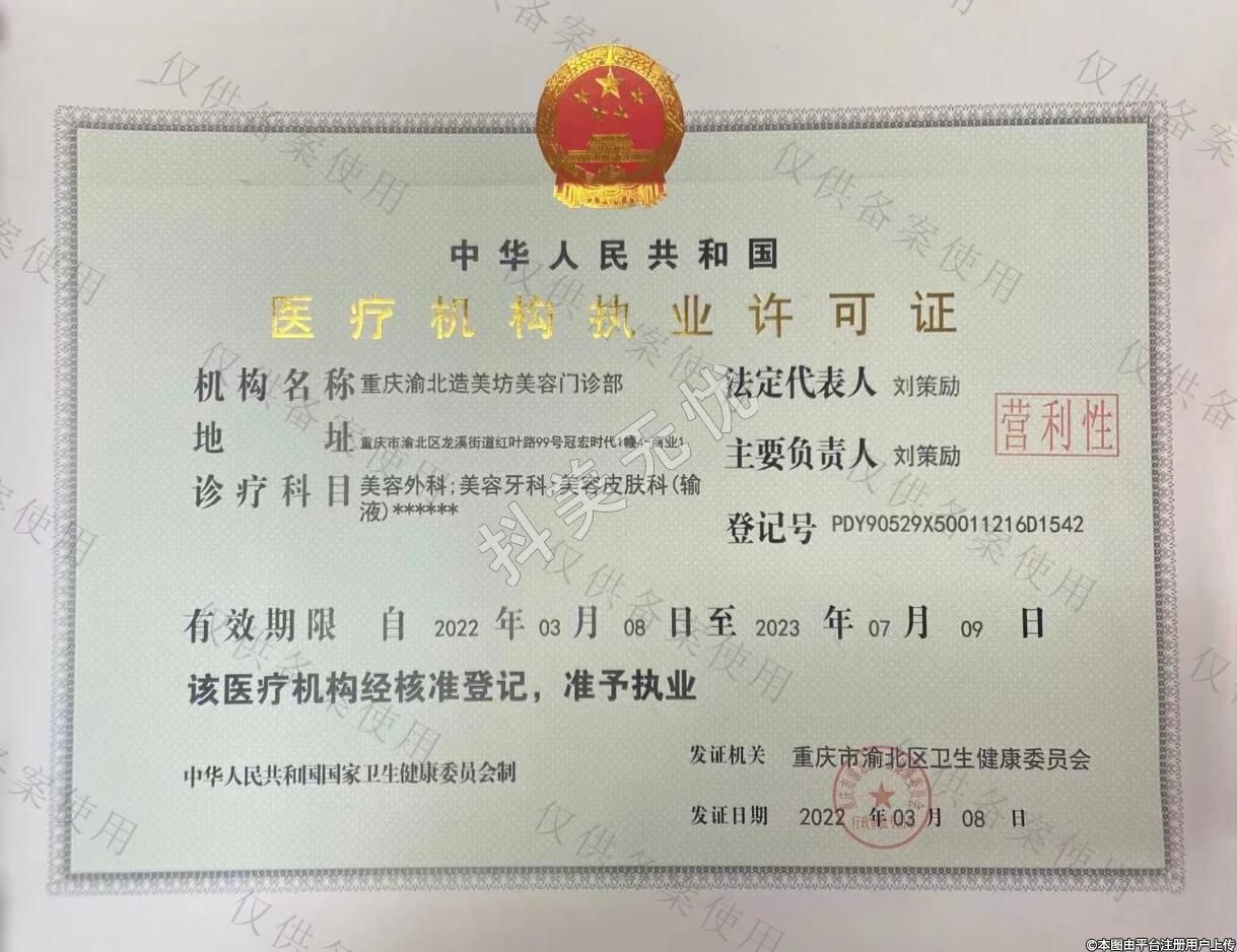重庆造美坊美容地址:重庆市渝北区龙溪街道红叶路99号冠宏时代1幢4-商业1,诊疗科目:美容外科 | 美容牙科 | 美容皮肤科(输液)******