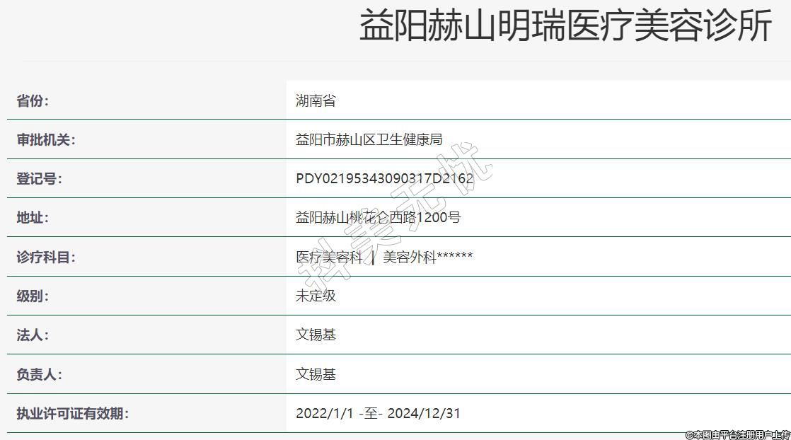 益阳赫山明瑞医疗美容2016-03-16成立,地址:益阳赫山桃花仑西路1200号,诊疗科目:医疗美容科 | 美容外科******
