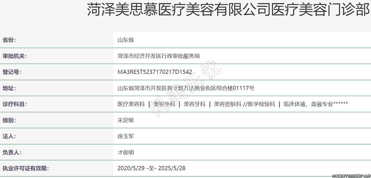 菏泽美思慕医疗美容有限公司医疗美容门诊部