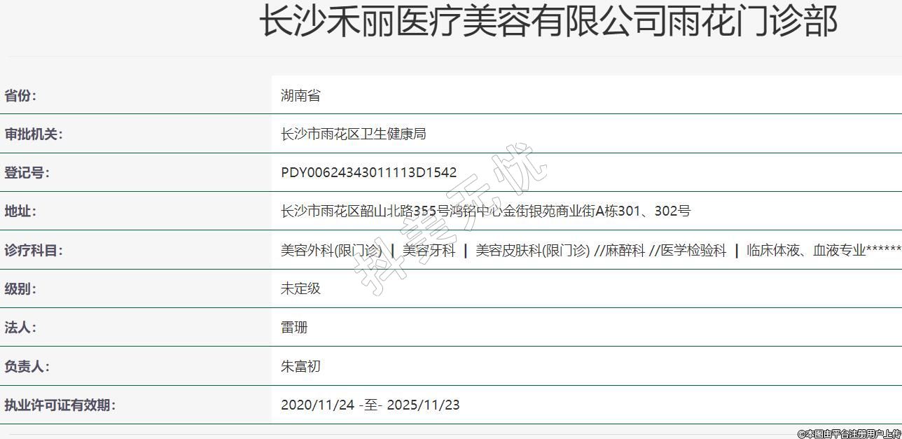 长沙禾丽医疗美容有限公司雨花门诊部