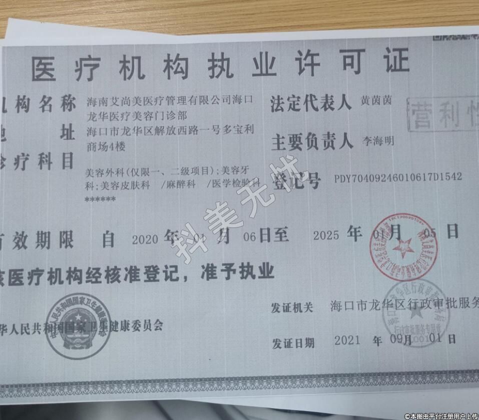 构名称:海南艾尚美医疗管理有限公司海口龙华医疗美容门诊部