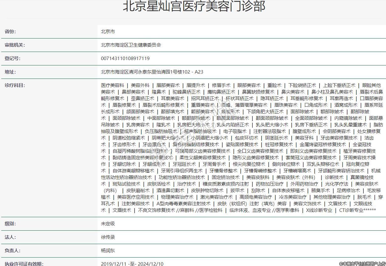 北京星灿宫医疗美容门诊部