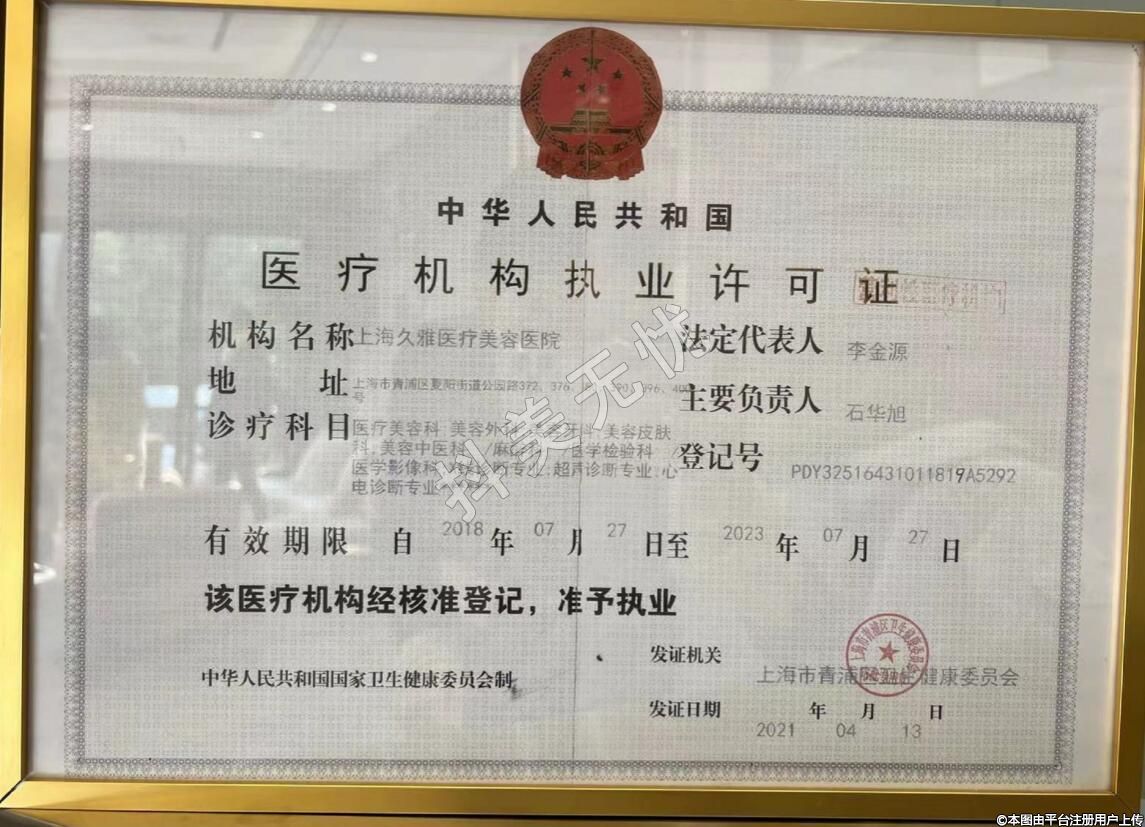 上海久雅医疗美容诊疗科目:医疗美容科:美容外科;美容牙:美容皮肤科,美容中医科/麻醉科/医学检验科/医学影像科:X线诊断专业,超声诊断专业,心电诊断专业******