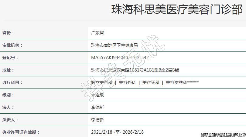 诊疗科目:医疗美容科 | 美容外科 | 美容牙科 | 美容皮肤科******