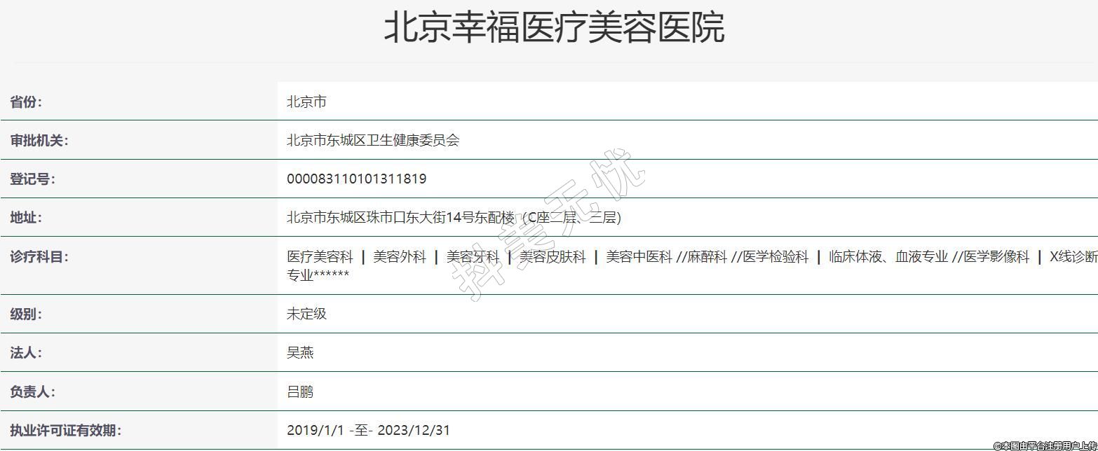 北京幸福医疗美容医院,坐落于中国首都北京。医院经营面积3000余平米,共设立美容外科、美容皮肤科、美容中医科、美容牙科、麻醉科、药剂科、医疗检验科、医学影像科等八大科室,拥有的整形外科专家和高水准的医疗美容专业团队。