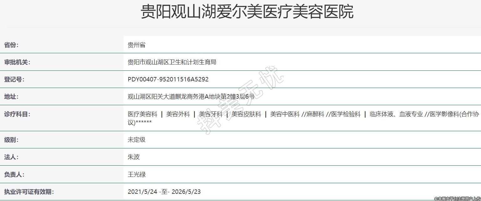 贵阳爱尔美医疗美容2020-09-01成立,地址:观山湖区阳关大道麒龙商务港A地块第2幢3层6号,诊疗科目:医疗美容科 | 美容外科 | 美容牙科 | 美容皮肤科 | 美容中医科 //麻醉科 //医学检验科 | 临床体液、血液专业 //医学影像科(合作协议)******