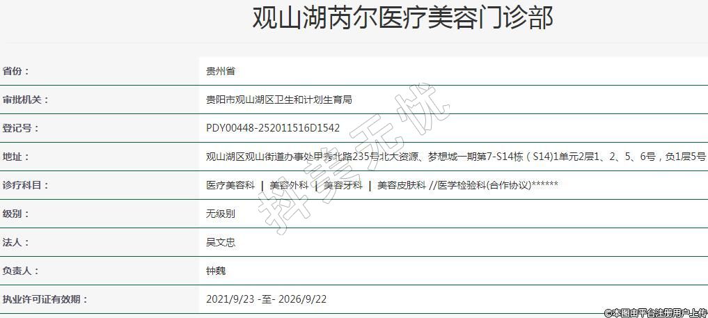贵阳芮尔医疗美容2021-04-28成立,诊疗科目:医疗美容科 | 美容外科 | 美容牙科 | 美容皮肤科 //医学检验科(合作协议)******
