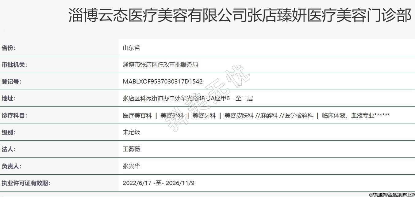 淄博臻妍医疗美容2022年05月20日成立,地址:张店区科苑街道办事处华光路48号A座甲6一至二层,诊疗科目:医疗美容科 | 美容外科 | 美容牙科 | 美容皮肤科 //麻醉科 //医学检验科 | 临床体液、血液专业******