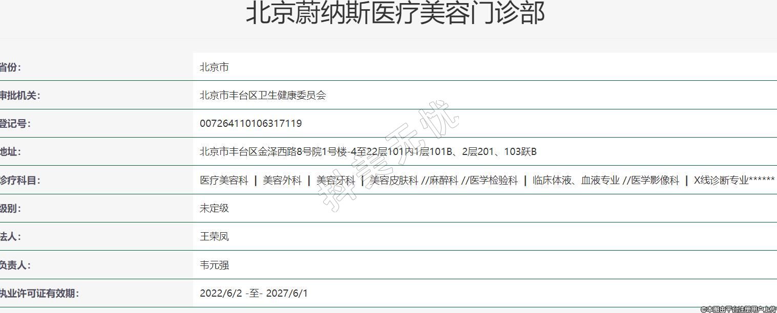 北京蔚纳斯医疗美容2020年11月05日成立,诊疗科目:医疗美容科 | 美容外科 | 美容牙科 | 美容皮肤科 //麻醉科 //医学检验科 | 临床体液、血液专业 //医学影像科 | X线诊断专业******
