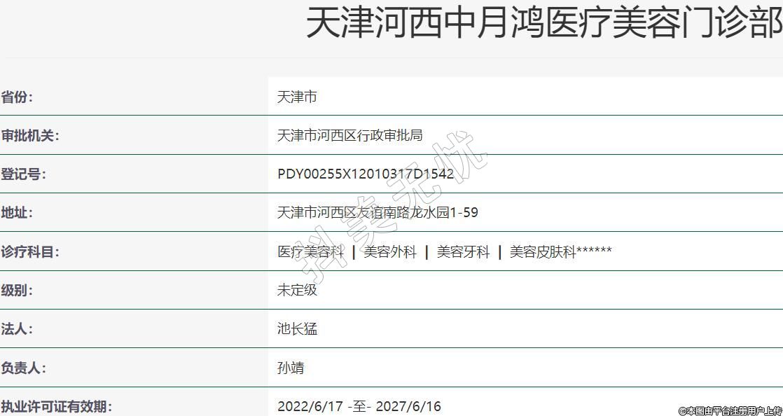 天津中月鸿医疗美容2018-01-25成立,地址:天津市河西区友谊南路龙水园1-59,诊疗科目:医疗美容科 | 美容外科 | 美容牙科 | 美容皮肤科******