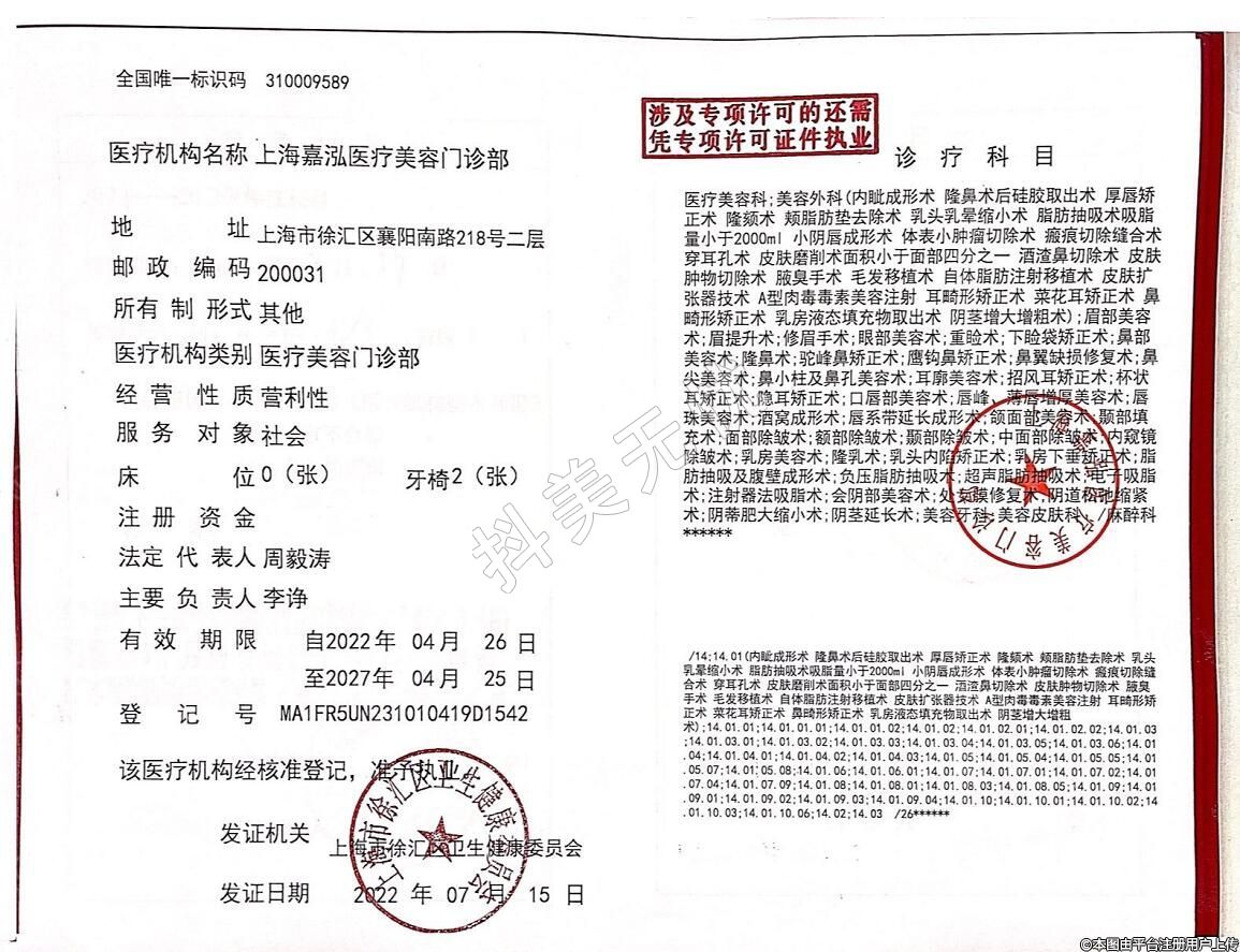 医疗机构名称:上海嘉泓医疗美容门诊部