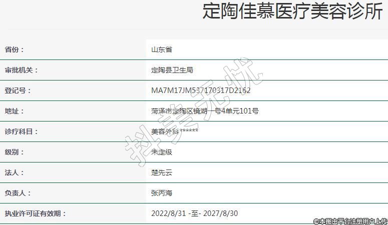 山东佳慕医疗美容有限公司成立于2022年04月21日,注册地位于山东省菏泽市定陶区滨河街道办事处陶驿路北段镜湖一号4单元101号门市,法定代表人为楚先云。经营范围包括许可项目:医疗美容服务;生活美容服务。