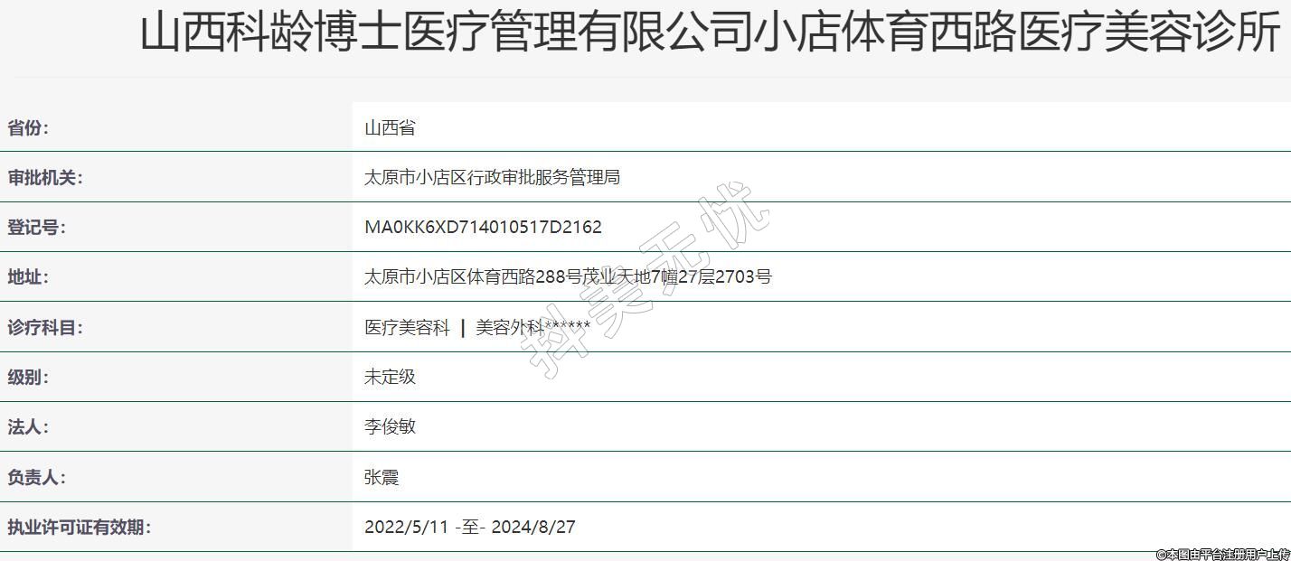 山西科龄博士医疗管理有限公司小店体育西路医疗美容诊所成立于2019-06-11,位于山西省太原市小店区营盘街道亲贤1街茂业小区7号楼27层。