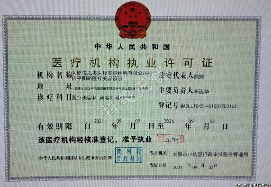 太原悦之美医疗美容2021-08-16成立,地址:太原市小店区平阳路街道平阳路49号御龙庭B座17号商铺,诊疗科目:医疗美容科 | 美容外科******