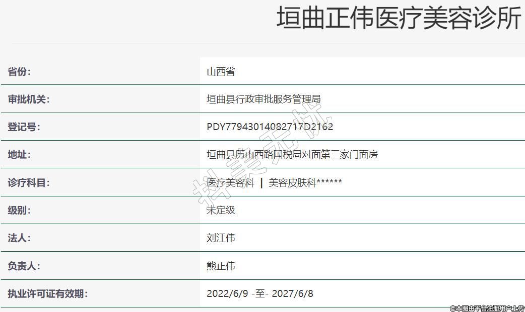 垣曲正伟医疗美容地址:垣曲县历山西路国税局对面第三家门面房,诊疗科目:医疗美容科 | 美容皮肤科******