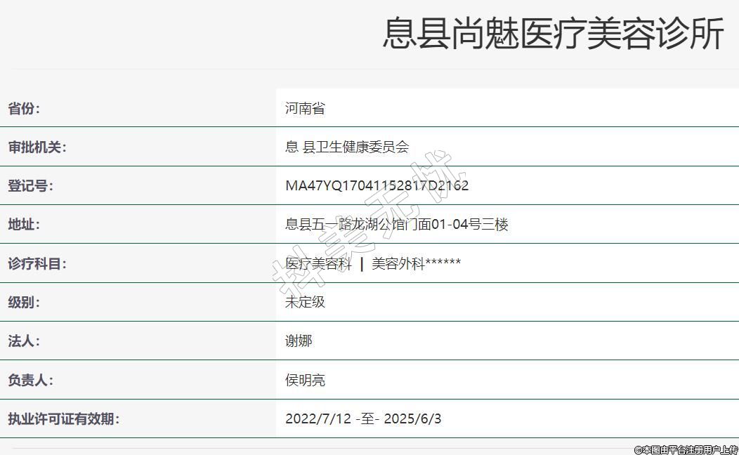 信阳尚魅医疗美容诊所,成立于2020年1月7日,位于河南省信阳市息县五一路龙湖公馆门面01-04号三楼,科室范围为医疗美容科美容外科。