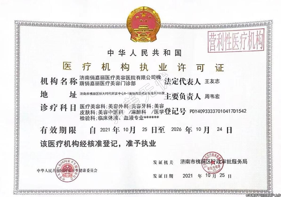 机构名称:济南俏嘉丽医疗美容医院有限公司槐荫俏嘉丽医疗美容门诊部