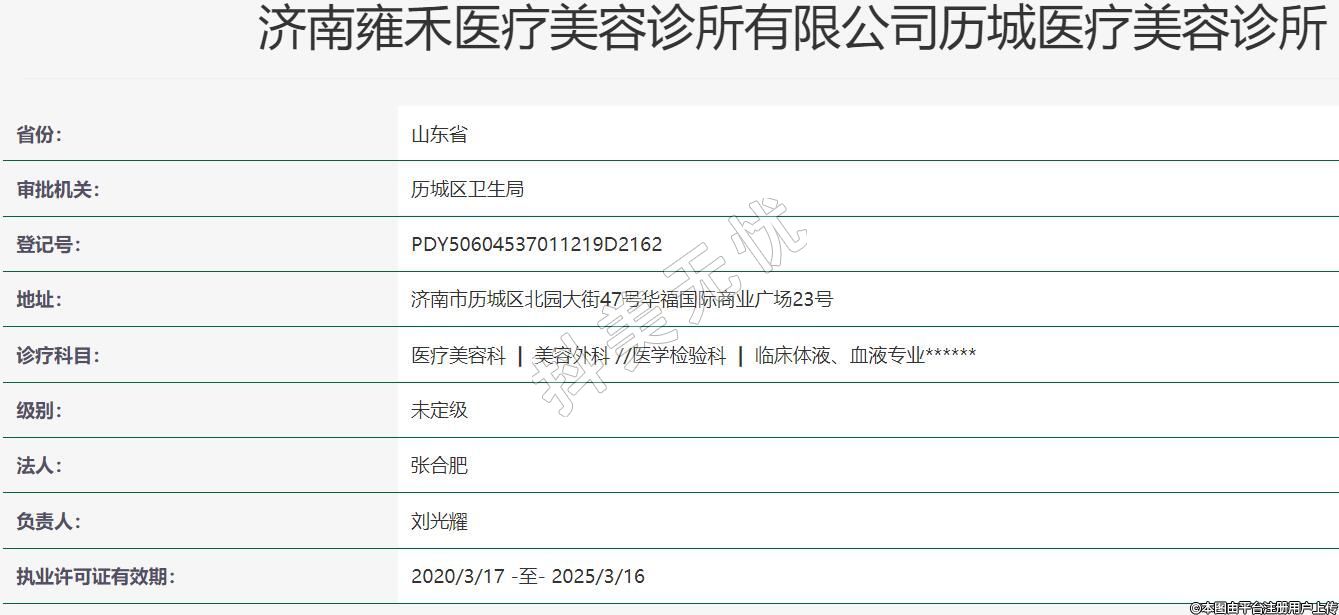 济南雍禾植发医疗美容2020-02-26成立,地址:济南市历城区北园大街47号华福国际商业广场23号,诊疗科目:医疗美容科 | 美容外科 //医学检验科 | 临床体液、血液专业******