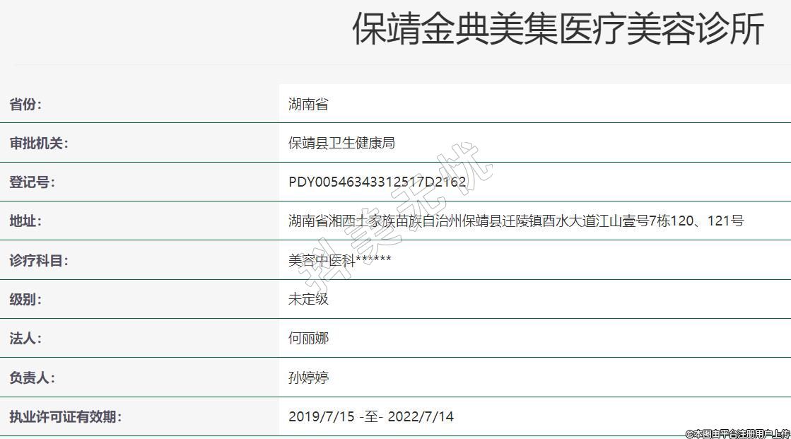 保靖金典美集医疗美容2019年02月26日成立,地址:湖南省湘西土家族苗族自治州保靖县迁陵镇酉水大道江山壹号7栋120、121号,诊疗科目:美容中医科******