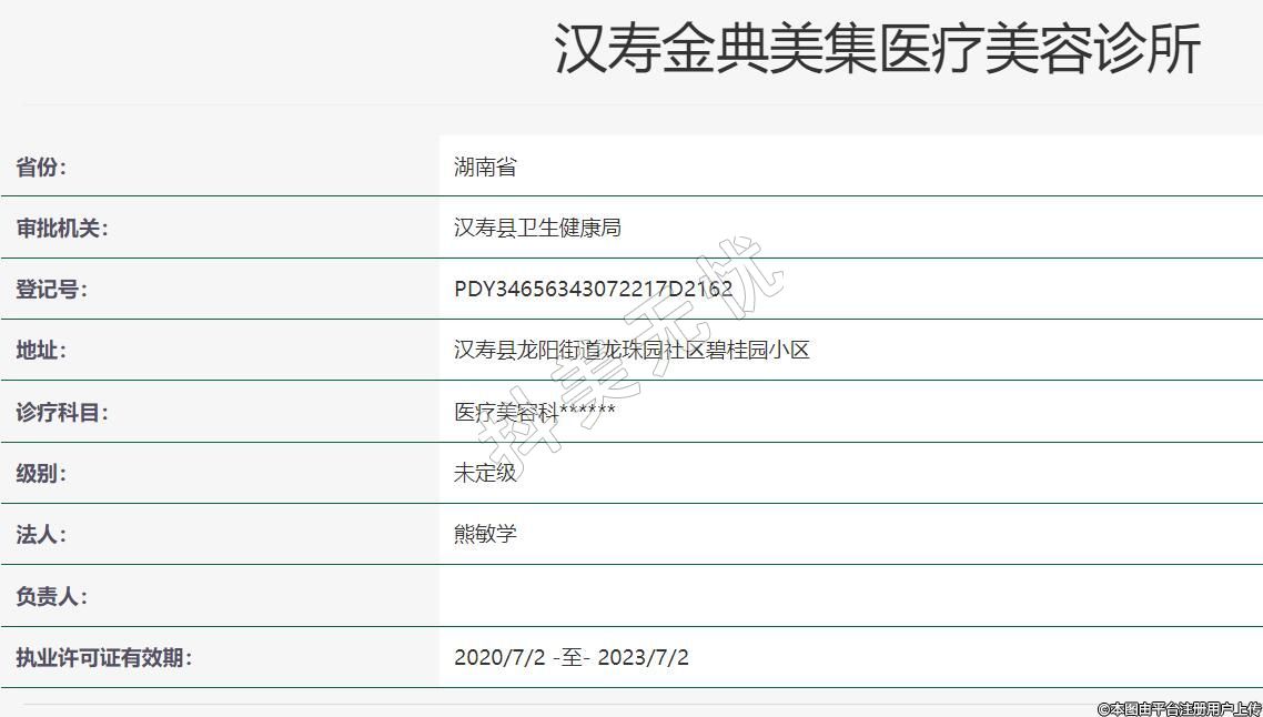 汉寿金典美集医疗美容2019年06月24日成立,地址:汉寿县龙阳街道龙珠园社区碧桂园小区,诊疗科目:医疗美容科******