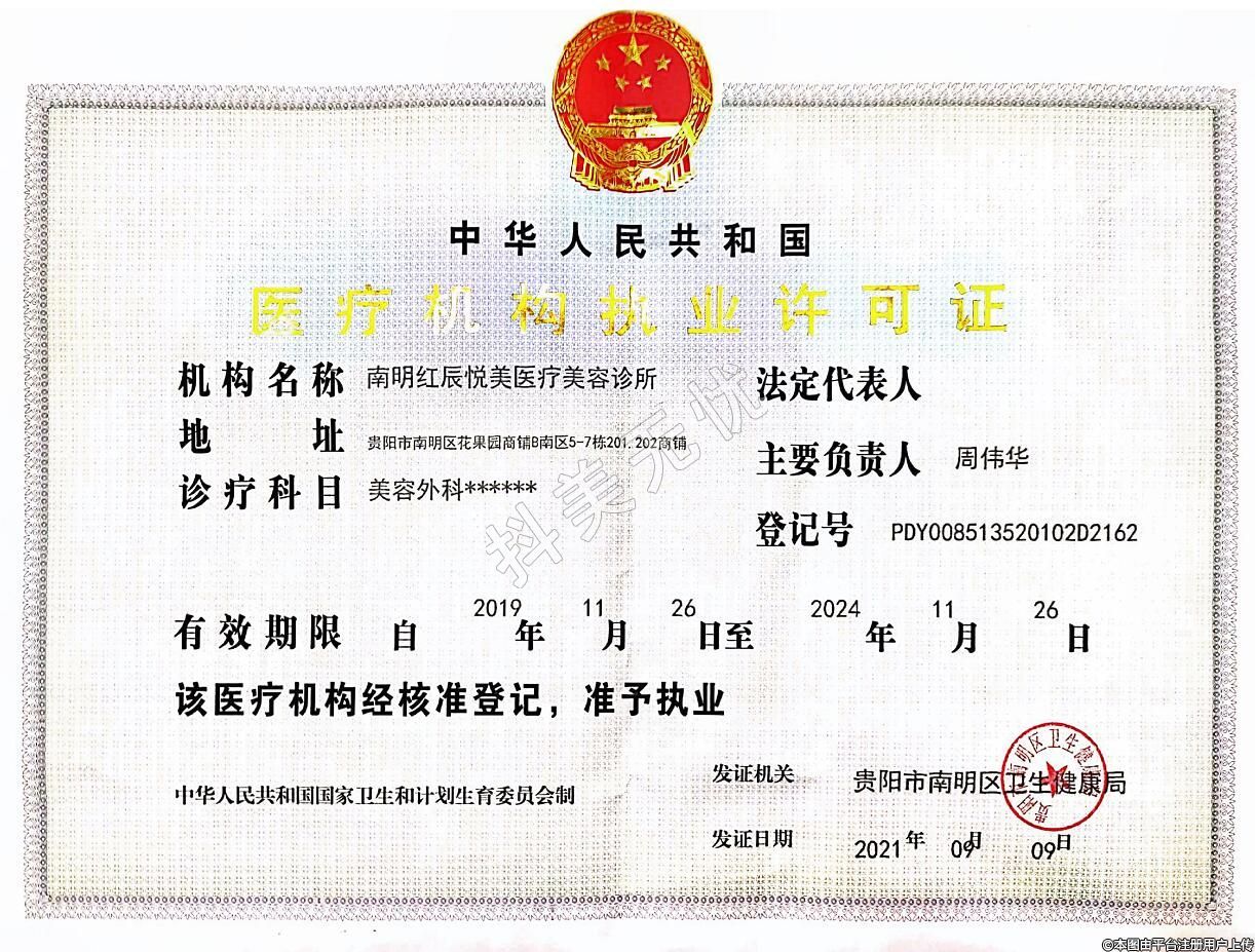 贵阳红辰悦美医疗美容2021-08-24成立,地址:贵阳市南明区花果园商铺B南区5-7栋201.202商铺,诊疗科目:美容外科******