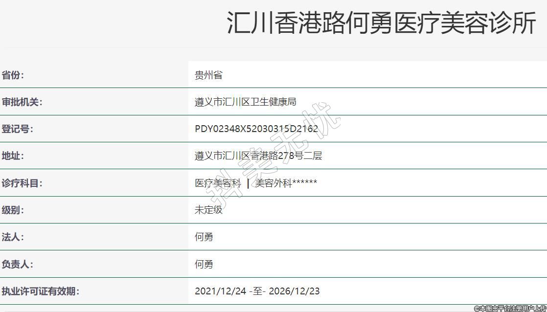 遵义何勇医疗美容地址:遵义市汇川区香港路278号二层,诊疗科目:医疗美容科 | 美容外科******