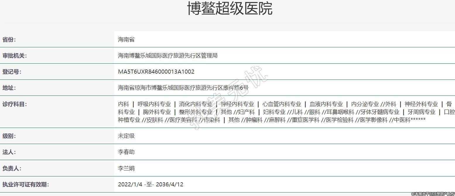 审批机关:海南博鳌乐城国际医疗旅游先行区管理局
