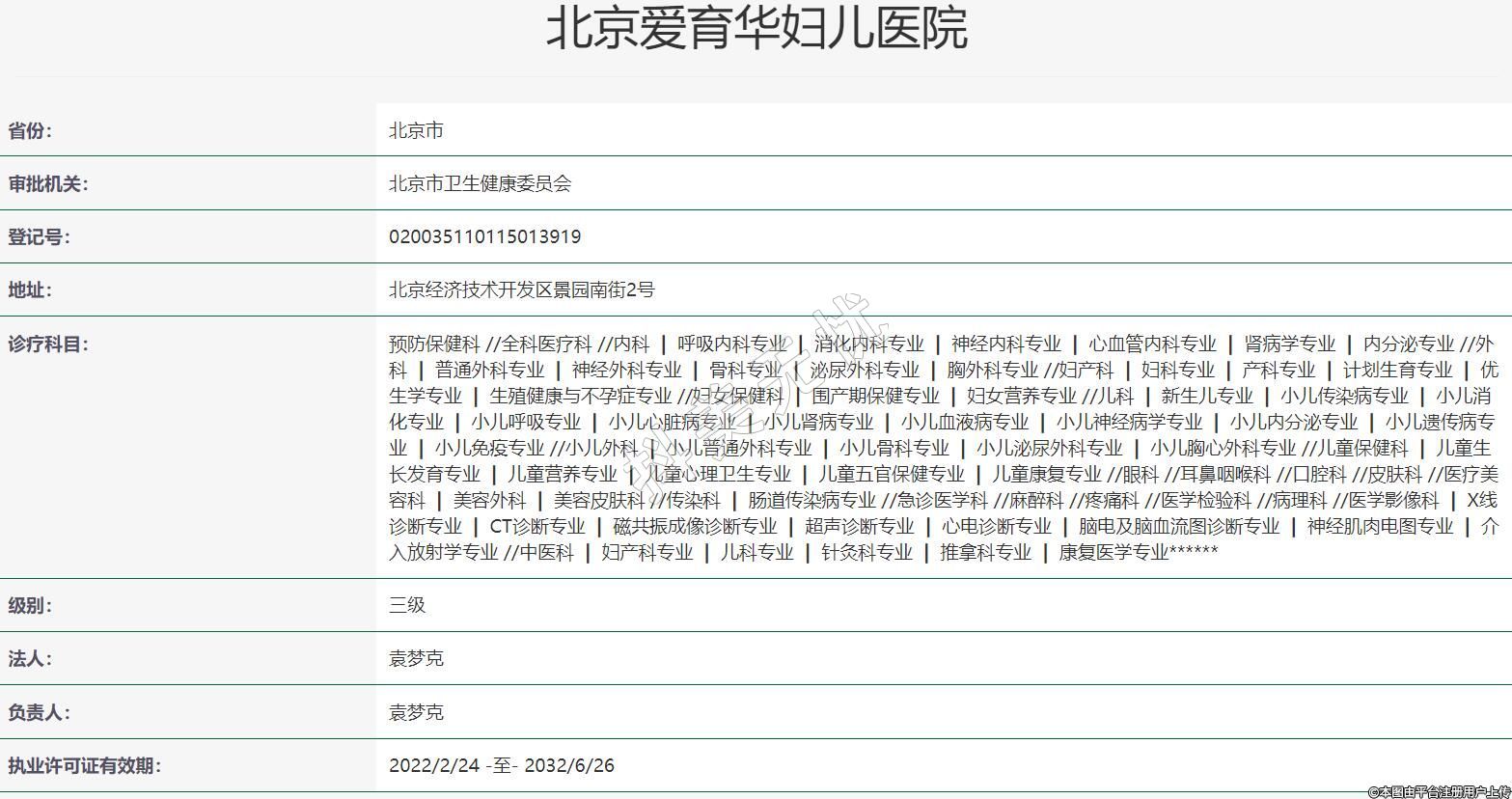 北京爱育华妇儿医院